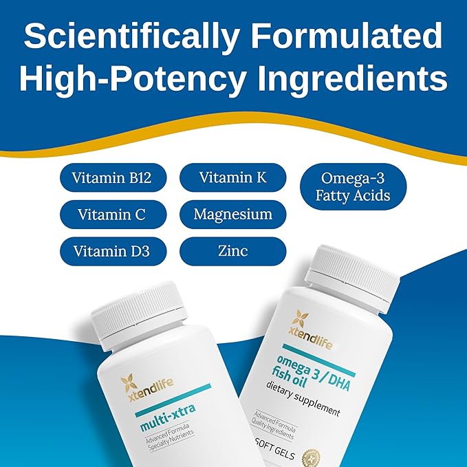 - Ultimate Nutritional Support: Leverage the power of 40+ bioavailable vitamins, minerals, and antioxidants from Multi-Xtra, paired with high-strength Omega 3/DHA Fish Oil, for unmatched heart, brain, joint and immune system support.