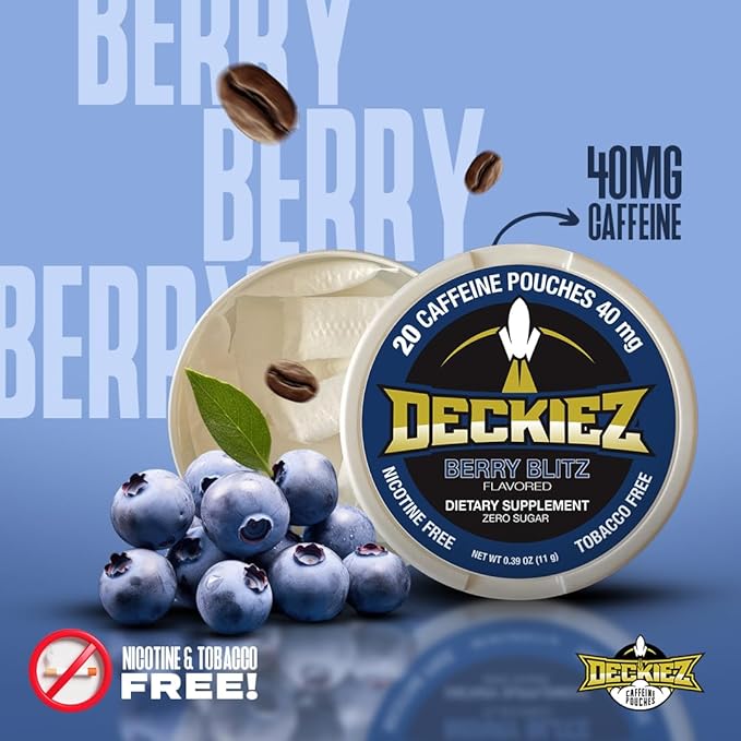 - FOUR DELICIOUS FLAVORS: Deckiez Caffeine Pouches are available in four irresistible flavors: Wintergreen, Berry Blitz, Raspberry Fuego, and Zen Lime. Unlike coffee-based products, Deckiez tantalizes your taste buds while providing a caffeine boost. Say goodbye to bland alternatives and hello to flavorful refreshment with Deckiez.