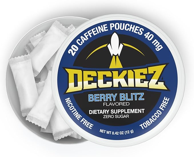 - CONTAINS 40MG OF CAFFEINE PER POUCH: Low on energy? Feeling fatigued? Deckiez Caffeine Pouches contain 40mg of caffeine, nearly 60% more than the leading competitor, and are the perfect alternative to energy drinks, pre workout, coffee, coffee pouches, and other energy supplements.
