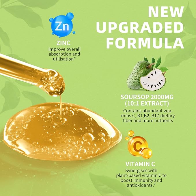 - 2000mg Graviola Soursop Drops: Lukaree 2000mg ultra-concentrated soursop bitters liquid, which contains no artificial synthetic ingredients, is alcohol-free, soy-free, non-GMO, has no dyes, no sugar, no gluten, and is vegetarian-friendly. We retain the biological activity of natural soursop leaf ingredients during the organic soursop extract, which can maximize the benefits to human health