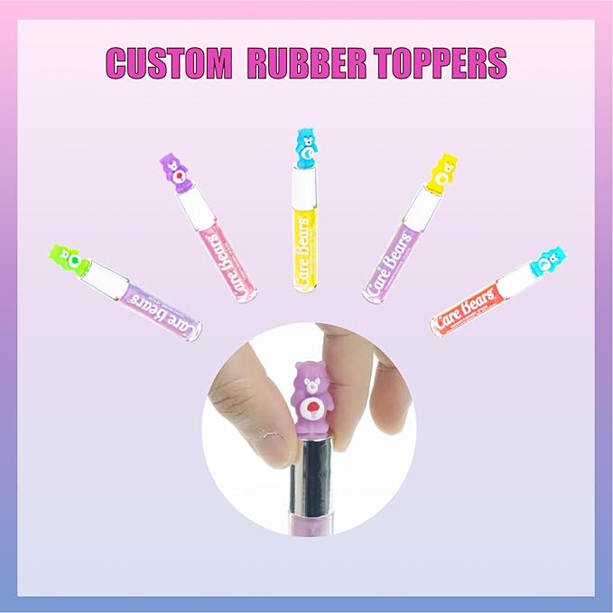 - FAVORITE CHARACTERS - These glosses are topped off with her favorite Care Bears such as Funshine Bear, Cheer Bear, and Good Luck Bear…just to name a few! Kids will have fun showing their friends this spunky gloss.