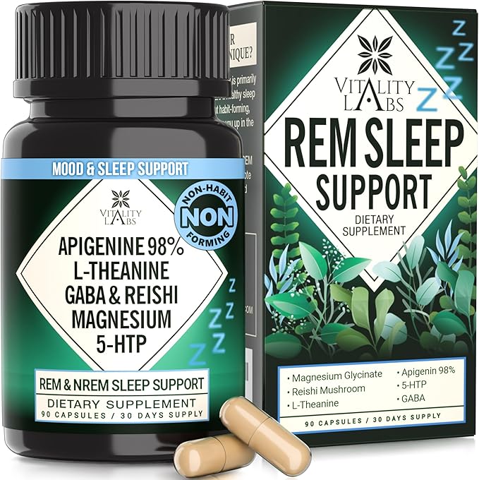 Natural Sleep Aid Supplement for Adults Without Melatonin - Non-Habit Forming Herbal Sleep - GABA, L-Theanine, Reishi Mushroom, Apigenin, Magnesium Glycinate, 5-HTP - 90 Vegan Capsules