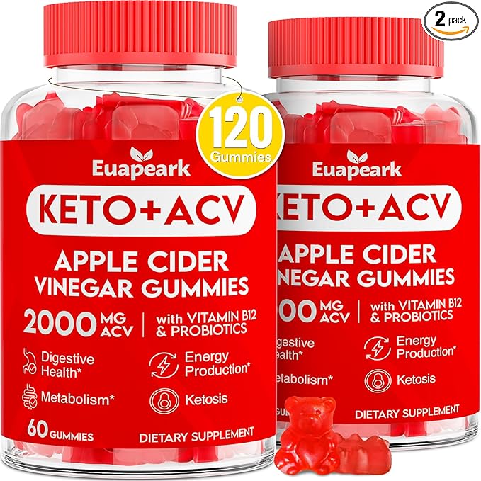 - Organic ACV Gummies with Mother: Each serving delivers 2000 mg of apple cider vinegar, 200 billion CFU of probiotics, B12, keto support blend, turmeric & black pepper. Keto ACV Gummies deliver key nutrients for digestion, metabolism, and overall health