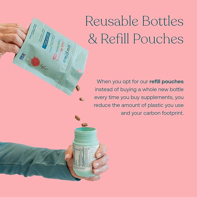 - REUSABLE, RECYCLED PACKAGING - Our commitment to planetary health is real—down to the recycled packaging we use. Our supplements are delivered in reusable bottles made from recycled plastics; and we offer refill pouches of True Grace products.