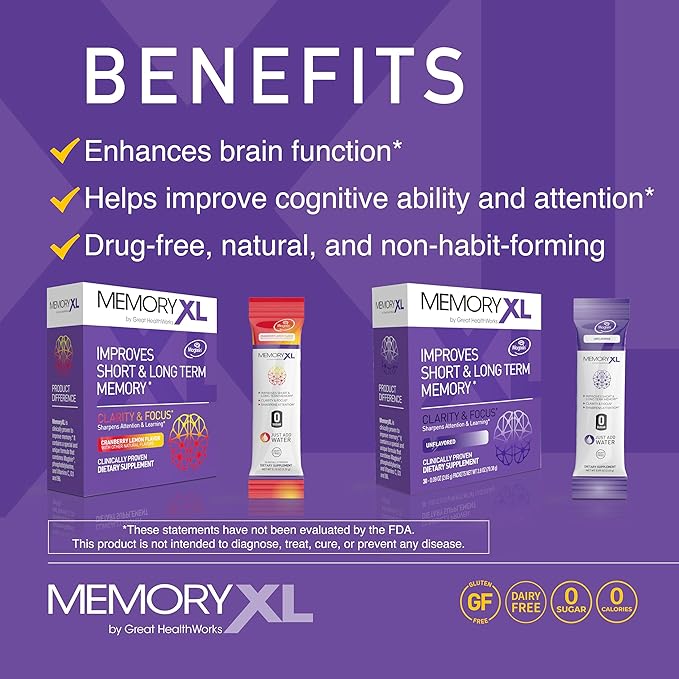 - UNIQUE DELIVERY SYSTEM, DISSOLVABLE, EASY FOR ALL – Designed for consumers who prefer not to swallow pills, caregivers, or those on the go, MemoryXL Powder stick packets easily mix into your water or favorite beverage. Proven to heighten concentration, mental acuity, and decision-making all with Zero calories and Zero sugar.*