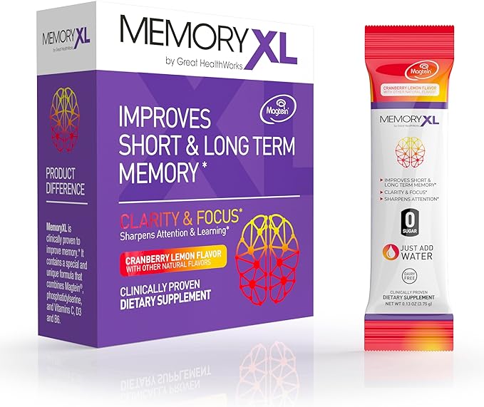 - ONE OF A KIND CLINICALLY PROVEN FORMULA - MemoryXL is the only stick pack supplement combining Magtein, phosphatidylserine, and vitamins C, D and B6. This formula is clinically proven to improve markers of learning, memory, and cognition by up to 50% after only 4 weeks of daily use.*