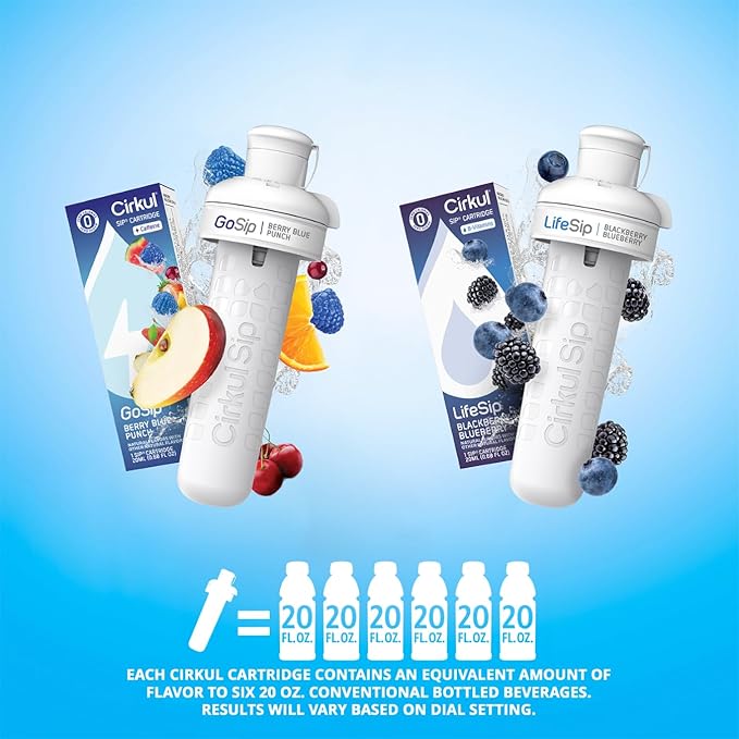 - MULTIPLE REFILLS ON THE GO: Each Cirkul cartridge contains an equivalent amount of flavor to six 20 oz. conventional bottled beverages. Results will vary based on dial setting.