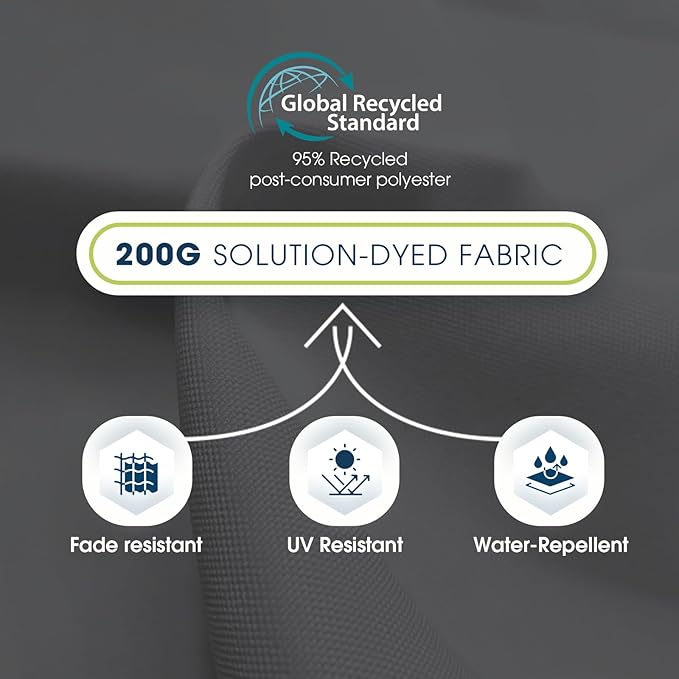 - UPGRADED ECO-FRIENDLY &RECYCLED FABRIC: This maket umbrella has a GRS certified canopy that is made of recycled Polyester Draw-Texturing-Yarn. This PU coated canopy has a US Standard AATCC 16 Grade 5 colorfastness to light, the thick high quality material provides excellent UV resistance, water proofing and fade resistance.