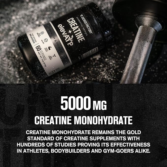 - Enhanced Muscle Growth: Our Creatine + ElevATP blend provides 5000mg of Creatine Monohydrate alongside 150mg of ElevATP for amplified muscle growth and strength gains, giving you the edge you need to push your limits and achieve your fitness goals.