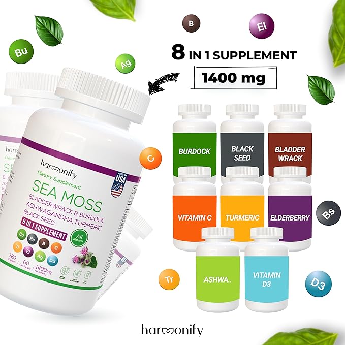 - HOLISTIC DETOXIFICATION: HARMONIFY combines mineral-rich sea moss with bladderwrack and burdock for detoxification, while also featuring immune-supporting ingredients like vitamin C, vitamin D3, elderberry, and ACV.