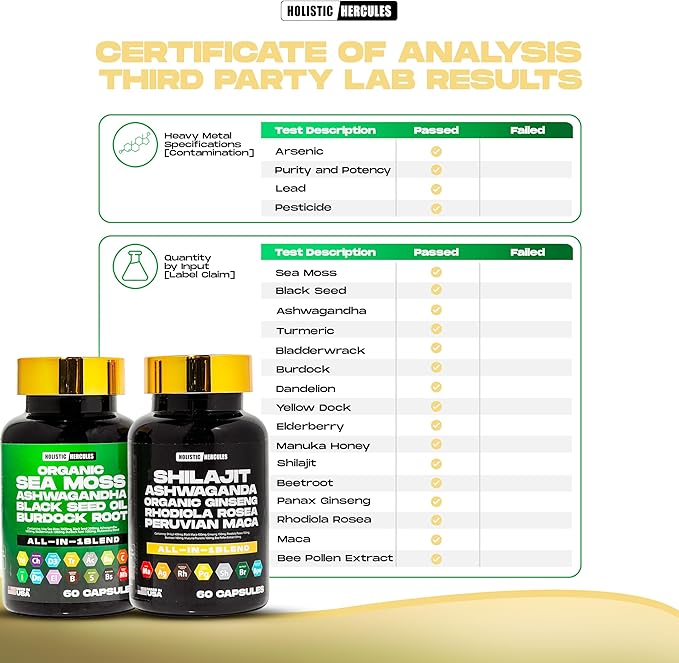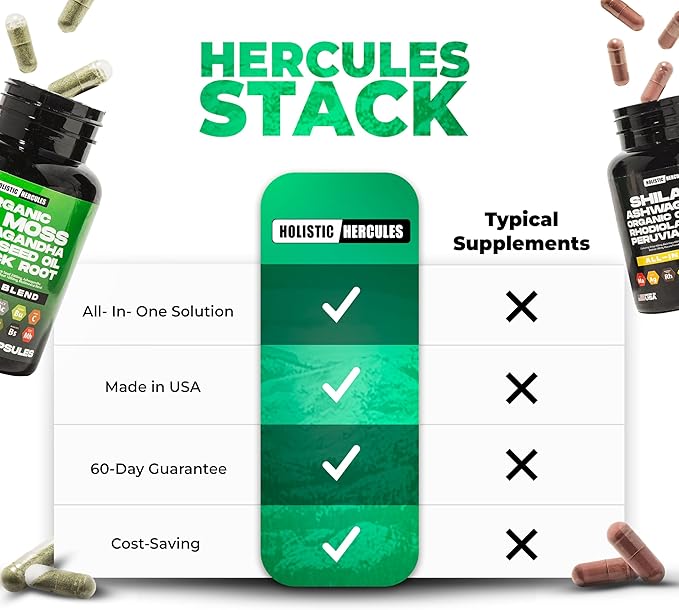 - Vetted and Trusted Ingredients Experience the quality of Holistic Hercules with our Sea Moss Capsules, Black Seed Oil, Ashwagandha Root, Burdock Root, and Bladderwrack Supplements. Our formulas are proudly crafted to create trusted Sea Moss and Bladderwrack capsules, Black Seed Oil, Ashwagandha for men, and Shilajit capsules. Enjoy the benefits of raw Sea Moss, Shilajit resin, and Shilajit honey sticks as alternatives to Sea Moss gummies, Shilajit gummies, and Ashwagandha gummies. Embrace wellness with our multi-mineral blend, featuring Turmeric Curcumin, Apple Cider Vinegar, and Chlorophyll for a comprehensive supplement experience.