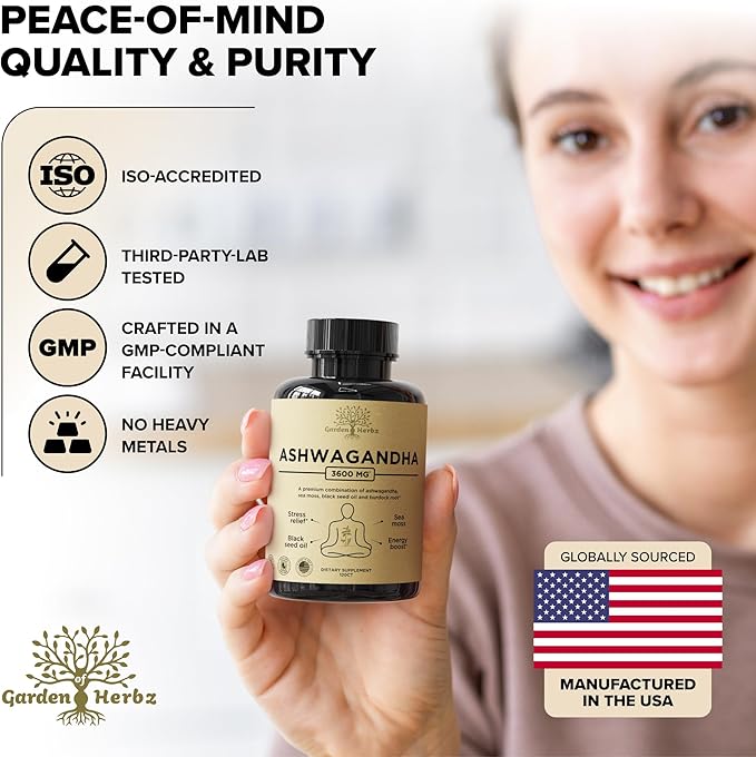 - Wholesome Formula – Support your health with a foundation of purity. Your black sea moss ashwagandha capsules are made in GMP- and ISO-accredited facilities in the USA with vegan, gluten-free ingredients