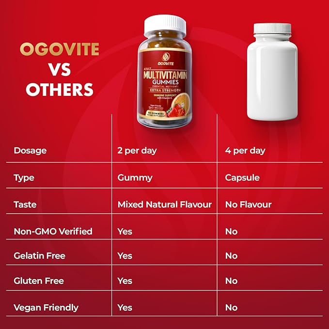 - VEGAN VIBES, ZERO GUILT - Ogovite Multivitamin Gummies are made with pectin, not gelatin. That means they're vegan, non-GMO, and guilt-free. Get your vitamins without compromising your lifestyle. Clean, mean, and ready to keep you on your health grind.