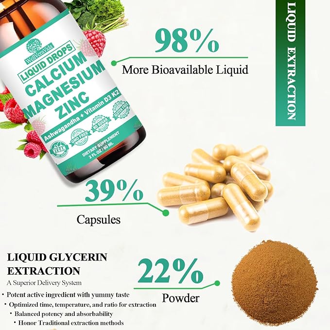 - 🌱 ADVANCED BODY WELLNESS: The calcium, magnesium, and zinc is vital for strengthening teeth, bones, and muscles, while enhancing immunity, brain function, heart health, energy, and sleep. Our innovative formula combines multi minerals and vitamins in a liquid supplement to deliver comprehensive nutritional support. Enjoy improved relaxation, bone density, muscle recovery, fitness endurance, and optimal brain, heart, and immune system function with this synergistic blend. Embrace whole-body wellness with our liquid calcium with vitamin d3, magnesium, and zinc multivitamin.