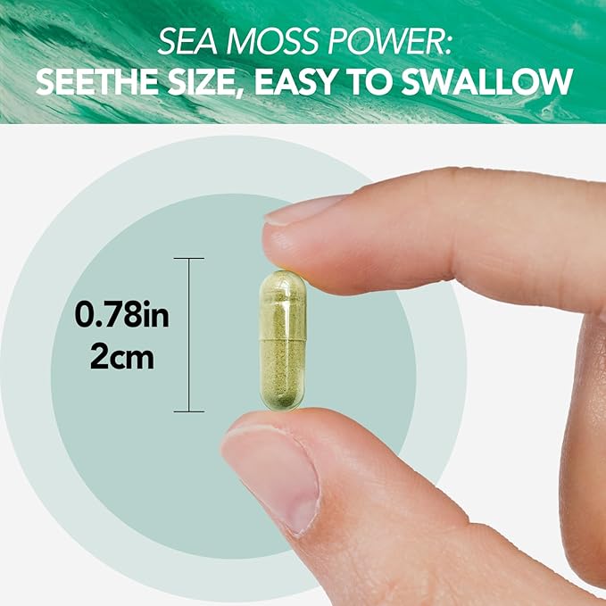 - Organic Ingredients and High-Efficiency Formula: Made from Organic Sea Moss, these capsules ensure natural purity, providing optimal nutritional support. They are an ideal alternative to Sea Moss Gummies and other supplements. With a blend of beneficial ingredients, they offer the most comprehensive and convenient supplementation solution