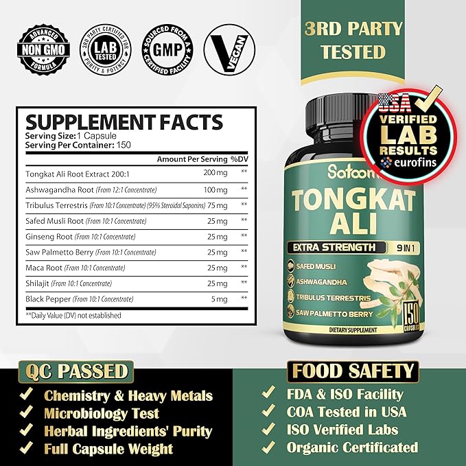 - ✔ Our Tongkat Ali supplement contains 150 capsules per bottle! A single bottle contains up to a 5-Month supply. Plus, these vegan capsules are easy and safe to swallow.