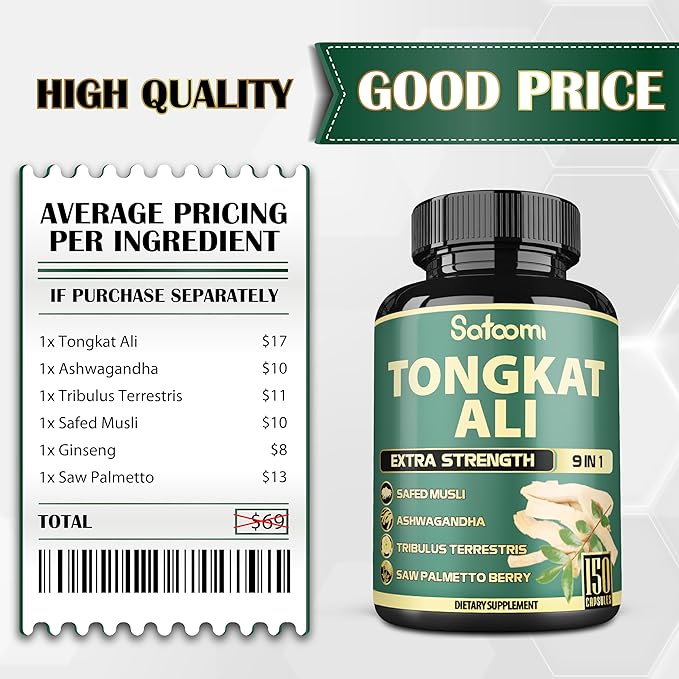 - ✔ Unique Blend Per Serving: combination of 9 powerful herbal ingredients, rich in benefits such as Tongkat Ali, Ashwagandha, Tribulus Terrestris, Safed Musli Root, Ginseng Root, Saw Palmetto Berry, Maca Root, Shilajit Powder, and Black Pepper