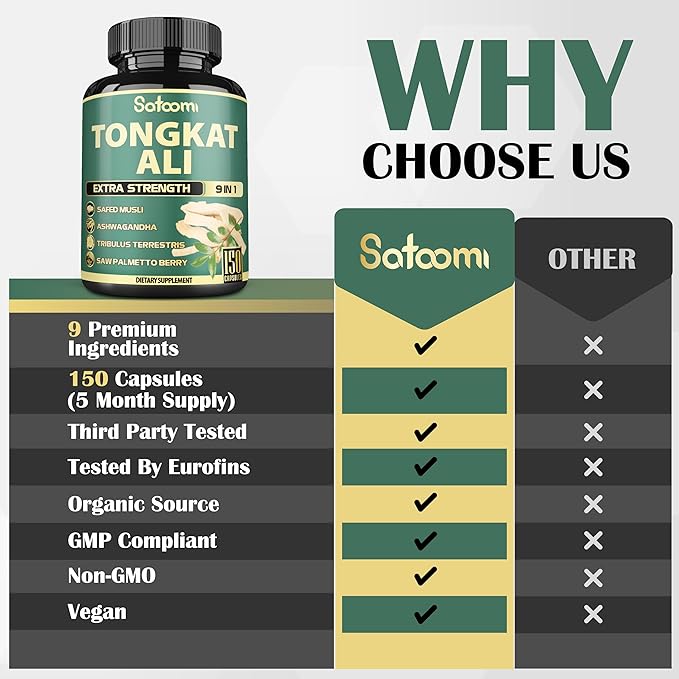 - ✔ Unique Blend Per Serving: combination of 9 powerful herbal ingredients, rich in benefits such as Tongkat Ali, Ashwagandha, Tribulus Terrestris, Safed Musli Root, Ginseng Root, Saw Palmetto Berry, Maca Root, Shilajit Powder, and Black Pepper