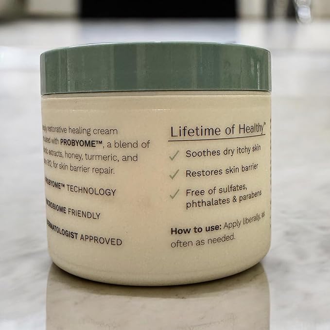 - PROBIOTIC POWERED, DERMATOLOGIST TESTED - This moisturizer for dry skin is powered by PROBYOME, a unique, patented blend of para probiotics, organic honey, organic turmeric & vitamin B12, protecting & supporting skin healing.