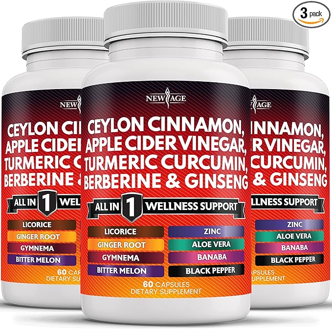 - The Perfect Ceylon True Cinnamon & ACV Supplement - New Age's Glucose blend offers 14 products in 1, with full-dose acv capsules, ceylon cinnamon, berberine complex, & Korean red ginseng caps in a handy 2-caps dosage! One of the most potent Ceylon cinnamon, acv pills with mother, turmeric adult gummies, organic ginseng powder, & ceylon cinnamon caps