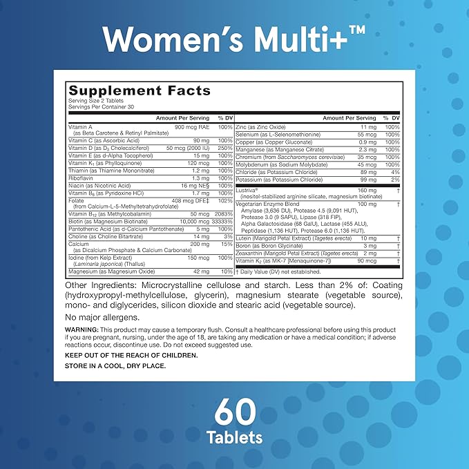 Jarrow Formulas Women's Multi+ Lustriva Hair Growth for Women, Vitamin A, D, Zinc & Lutein, 60 Tablets, 30 Day Supply
