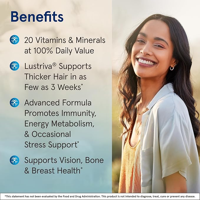 - LUSTRIVA FOR THICKER FULLER HAIR: This women's daily multivitamin supplement is formulated wit Lustriva to support thicker, fuller hair in as little as 3 weeks(1)