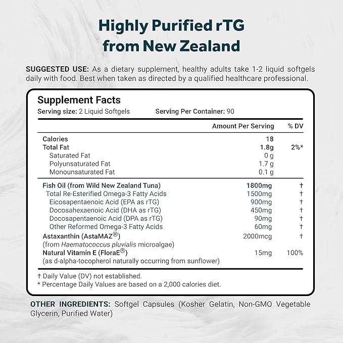 - SUSTAINABLY SOURCED: Single-sourced from only Wild New Zealand Tuna. Our re-formed Omega-3 fish oil 1800mg is certified sustainable and traceable by the Marine Stewardship Council (MSC) and IFOS 5-star rated.
