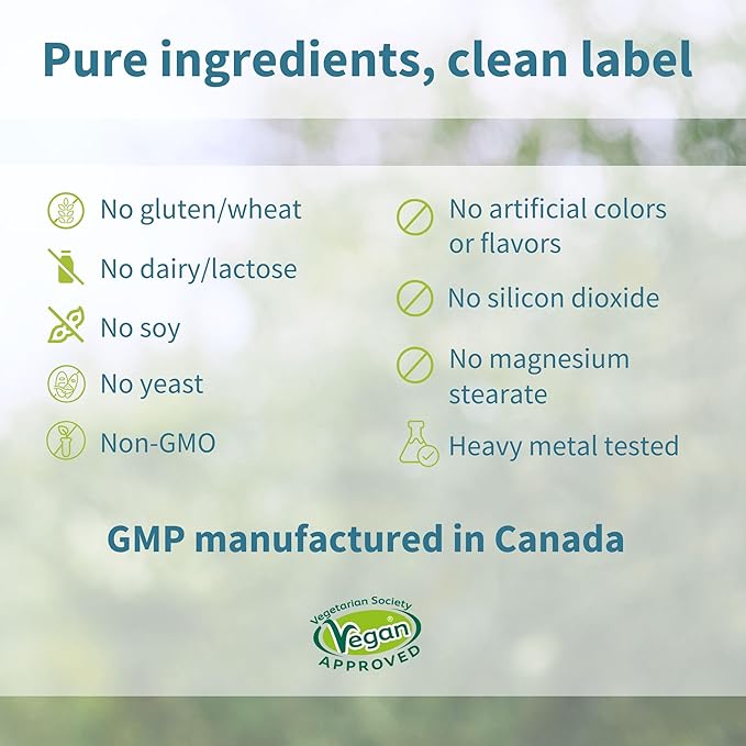 - PURE & CLEAN: we only use clean and hypoallergenic ingredients (no sugar, glucose syrup, artificial colors, flavors, sweeteners, or preservatives). Tested for heavy metals and lab-verified, GMP manufactured in Canada, recyclable & BPA-free packaging, vegan