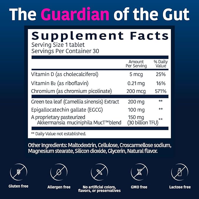 - Primary Supplement Type : Vitamin D3, Vitamin B2, Chromium, Akkermansia Muciniphila