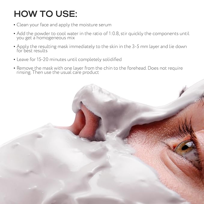 - SIMPLE APPLICATION: Transform your peel off face masks skincare routine with our easy-to-use facial masks for women skin care. Mix the alginate powder with water, apply a generous layer to your face, and let it work its magic for 15-20 minutes. As moisturizing face mask solidifies, it forms a contouring face mask peel off that lifts and tones. No need to rinse - just peel off anti aging face mask and reveal your refreshed skin. Follow up with your favorite moisturizer for optimal results.