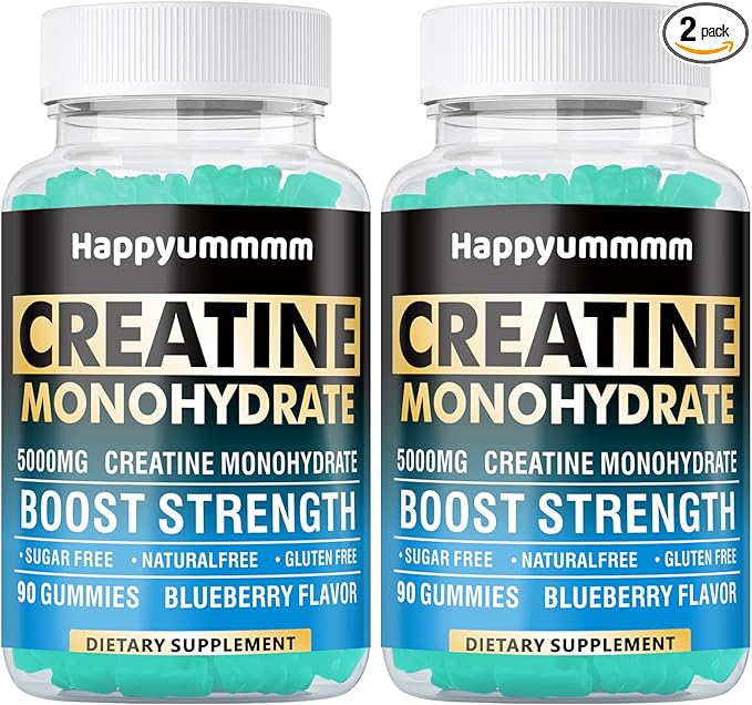 Creatine Monohydrate Gummies 5000mg for Men & Women, Chewables Creatine Monohydrate for Muscle Strength, Muscle Builder, Energy Boost, Pre-Workout Supplement(180 Count)-Blueberry 2pack