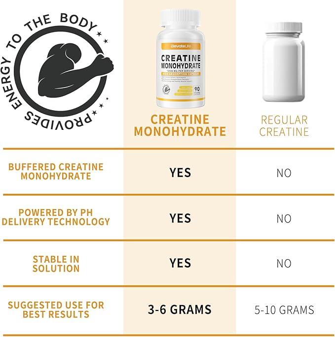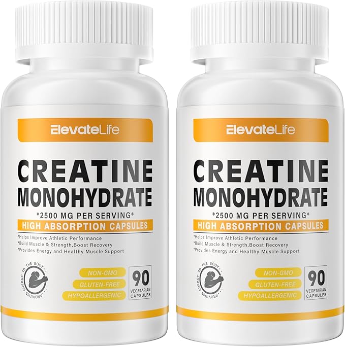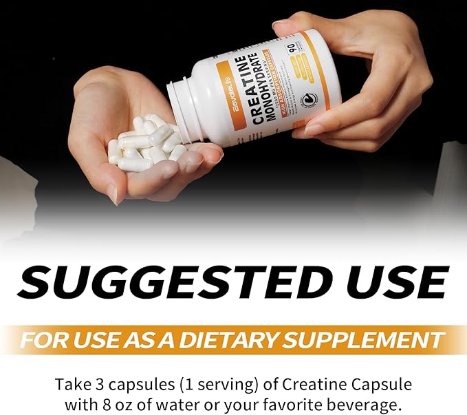 - 180 Capsules (60 Servings) of Creatine Monohydrate Per Bottle
