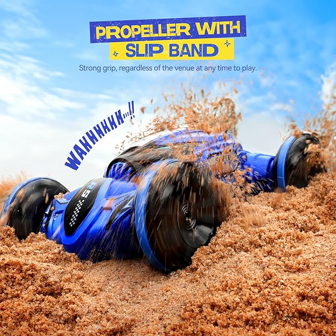 - [Propeller Wheels] Unique propeller-type wheel and high-quality silicone anti-skid belt combined to give amphibious remote control vehicle strong road grip, a variety of venues more than enough edge.