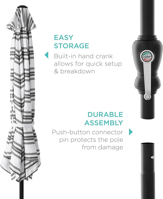 Best Choice Products 10ft Outdoor Steel Polyester Market Patio Umbrella w/Crank, Easy Push Button, Tilt, Table Compatible - Striped Black