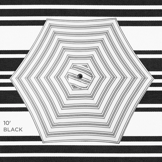 - CLASSIC OUTDOOR DECOR: 10-foot diameter umbrella adds a cooling and colorful addition to every outdoor sitting area (Note: Umbrella base not included); Pairing Suggestion: SKY5897/ASIN: B08GVQ8G35; OVERALL DIMENSIONS: 10'(Dia) x 96"(H)