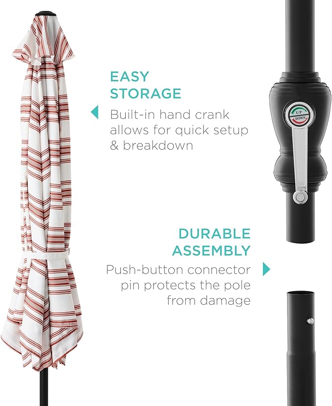 Best Choice Products 10ft Outdoor Steel Polyester Market Patio Umbrella w/Crank, Easy Push Button, Tilt, Table Compatible - Striped Rust