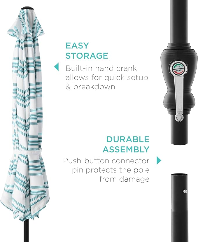 - CONVENIENT CRANK HANDLE: Features a crank handle for easy opening/closing, while its adjustable easy-tilt system allows for optimal protection from the sun