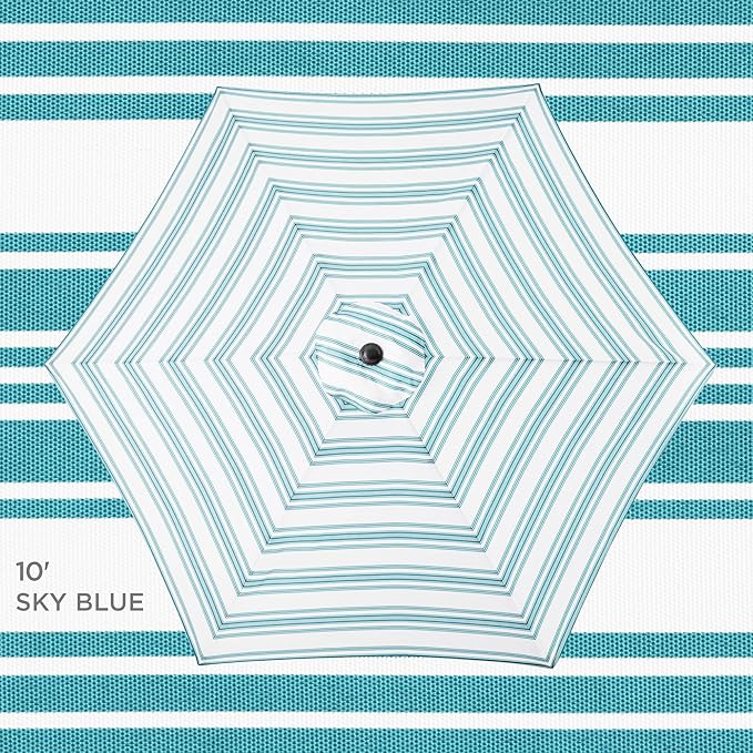 - CLASSIC OUTDOOR DECOR: 10-foot diameter umbrella adds a cooling and colorful addition to every outdoor sitting area (Note: Umbrella base not included); Pairing Suggestion: SKY5897/ASIN: B08GVQ8G35; OVERALL DIMENSIONS: 10'(Dia) x 96"(H)
