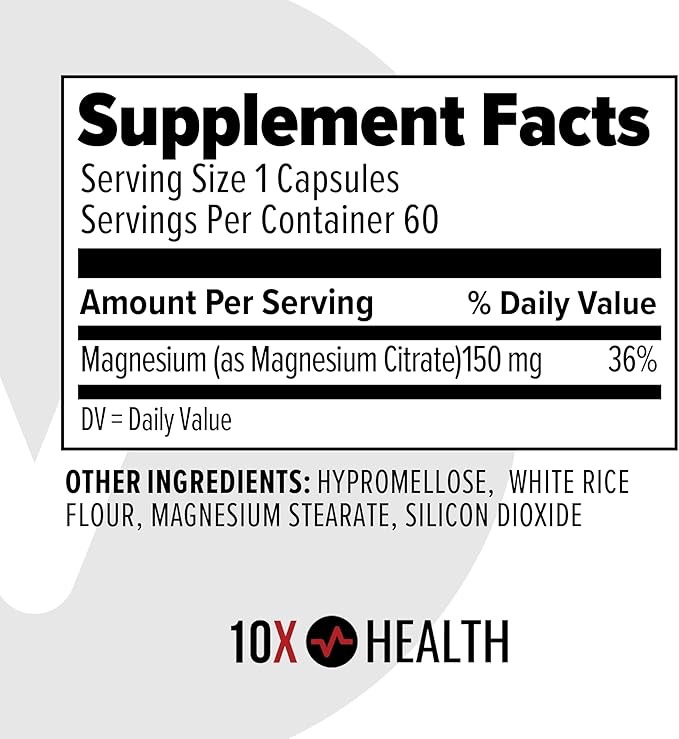 - Highly Bioavailable Magnesium Capsules: 10X Magnesium Citrate Capsules offer 120mg of easy-to-absorb magnesium citrate per serving, offering maximum benefits for overall health. Due to its excellent absorption, it's the best option for optimal health.