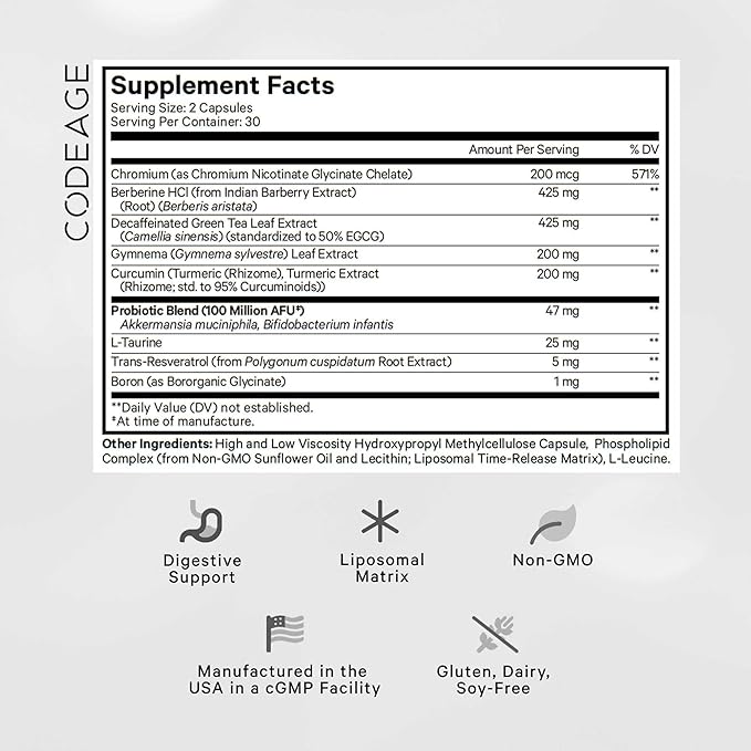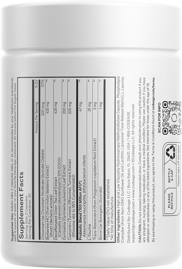 - Comprehensive Formula with Key Ingredients: Codeage GLP-Advantage+ supplement features Chromium and Berberine HCl, along with Decaffeinated Green Tea Leaf Extract standardized to 50% EGCG and Gymnema Sylvestre Leaf Extract.