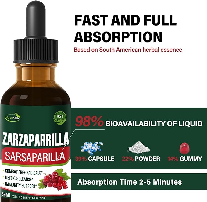 - ABSORCIÓN RÁPIDA Y FÁCIL DE TOMAR: Nuestros suplementos líquidos de extracto de Zarzaparrilla ofrecen hasta un 98% de tasa de absorción y se absorben en 5 minutos. Superan a las cápsulas y pastillas tradicionales. Toma 1-2 ml y añádelo al agua o bebida. Agite bien antes de usarlo, sin amargura destruirá tu bebida.