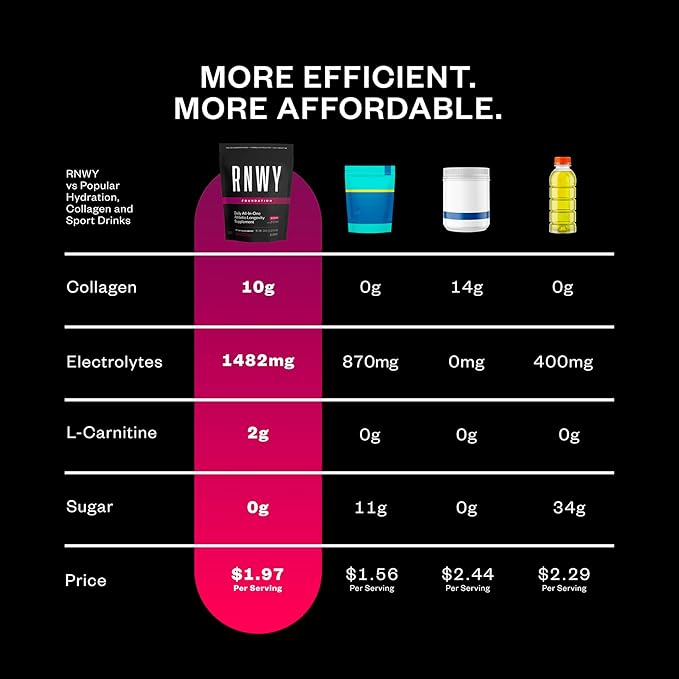 RNWY Wild Cherry Foundation Collagen Powder, Daily Joint Support with Electrolytes and Multivitamin, 10g Collagen Peptides, Sugar Free, 30 Servings