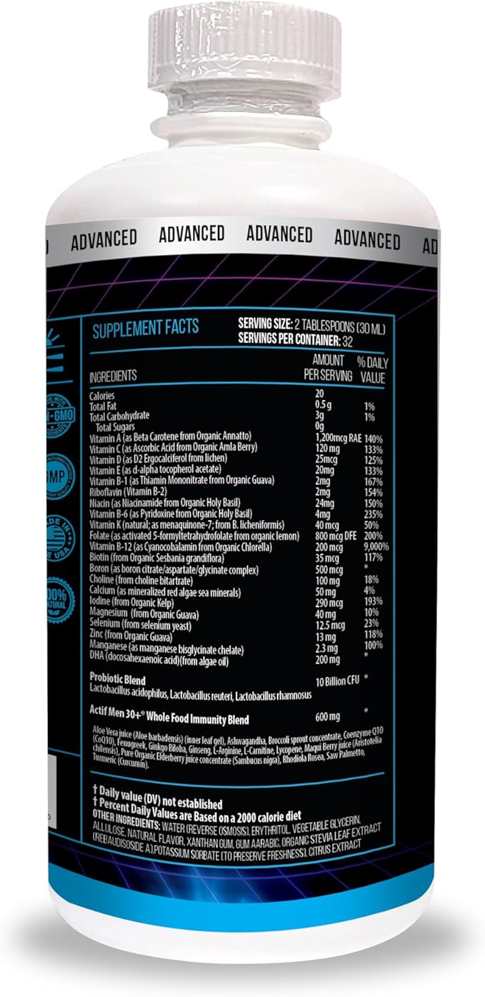 ACTIF Liquid Daily Multivitamin for Men Age 30+ with 40 Advanced Factors – Non GMO, Made in USA, 32oz, Expiration: 05/2026