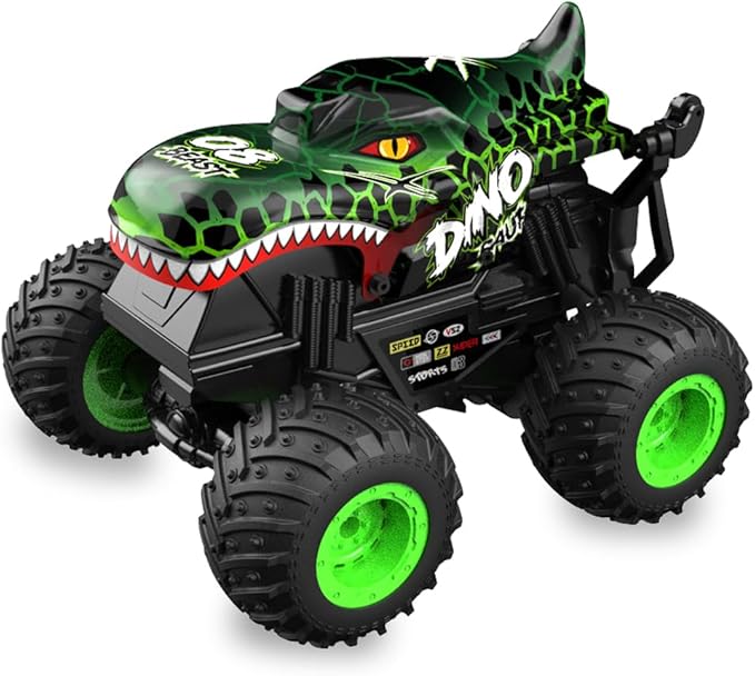 • Dinasaur RC Car: in addition to the skills of a normal RC car, DDIOYIUR Dinosaur RC car is capable of performing 360° rotating stunts under the conditions of sufficient battery power and high friction on the ground.Long press to the music button the truck will do a stunt automatically.