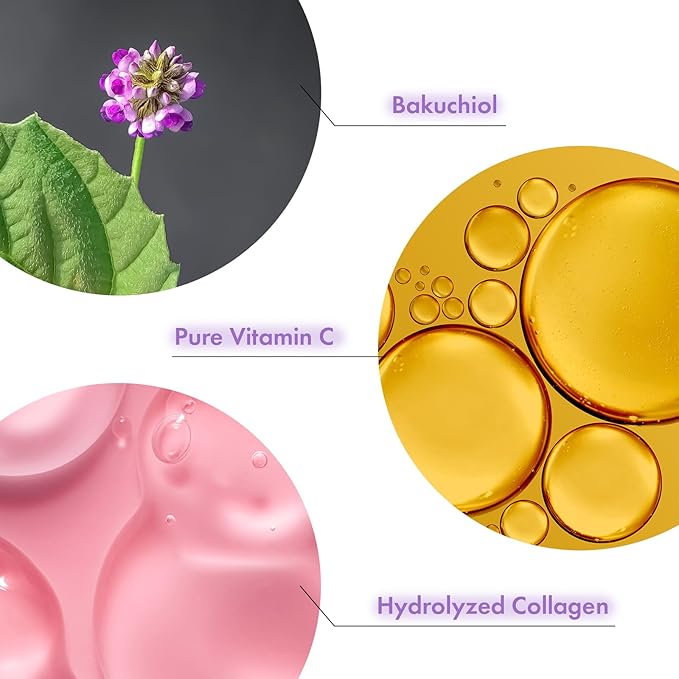 - FAST ABSORBING, LIGHTWEIGHT HYDRATION: Experience the hydrating power of our Bakuchiol Face Serum. The blend of peptides and hydrolyzed collagen instantly nourishes, making your skin appear bouncy and thoroughly hydrated, promoting a natural, youthful glow.