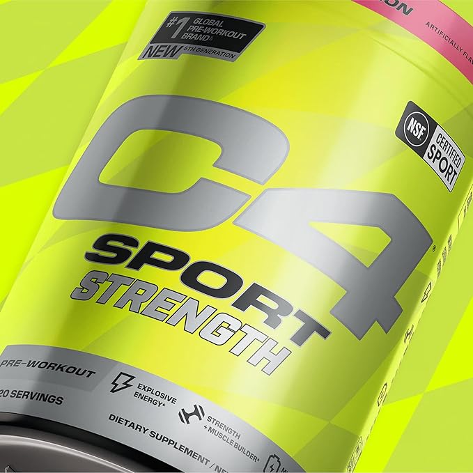 Cellucor C4 Sport Strength Pre Workout Powder - NSF Certified for Sport - Beta-Alanine, Creatine, 200mg Caffeine - Sugar Free Energy Supplement for Men & Women - Watermelon, 20 Servings