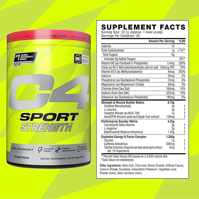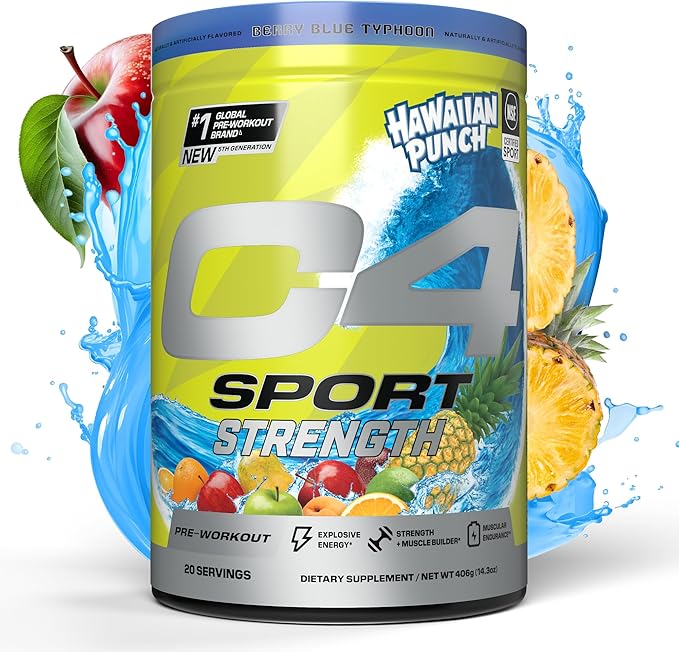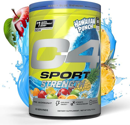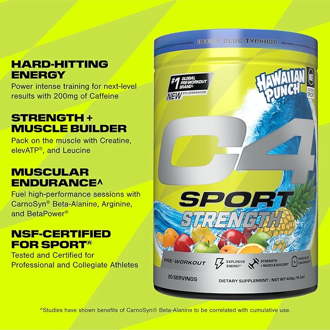 Cellucor C4 Sport Strength Pre Workout Powder - NSF Certified for Sport - Beta-Alanine, Creatine, 200mg Caffeine - Sugar Free Energy Supplement for Men & Women - Hawaiian Punch Berry Blue, 20 Servings