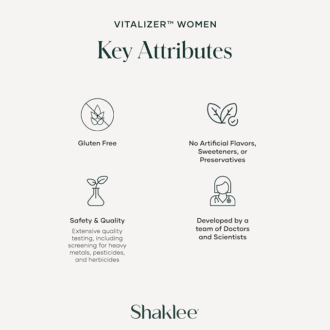 - Nutrient-Rich Formula: Vitalizer Women delivers a rich blend of essential nutrients, encompassing vitamins, minerals, phytonutrients, omega-3 fatty acids, and probiotics, providing a robust foundation.