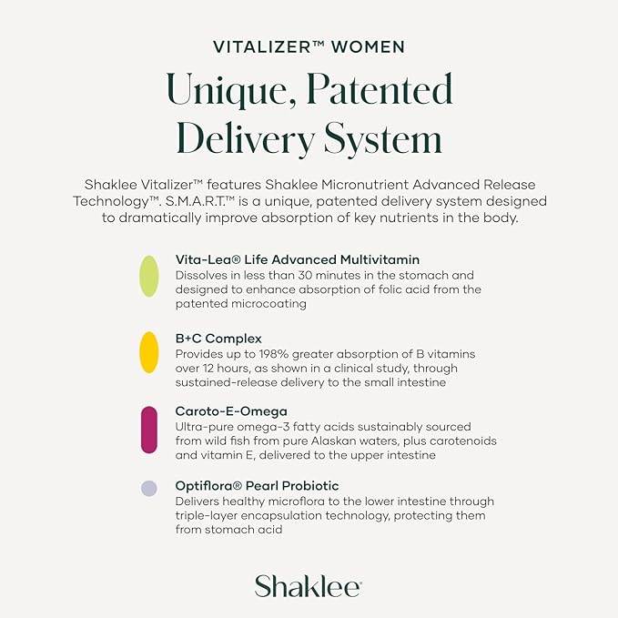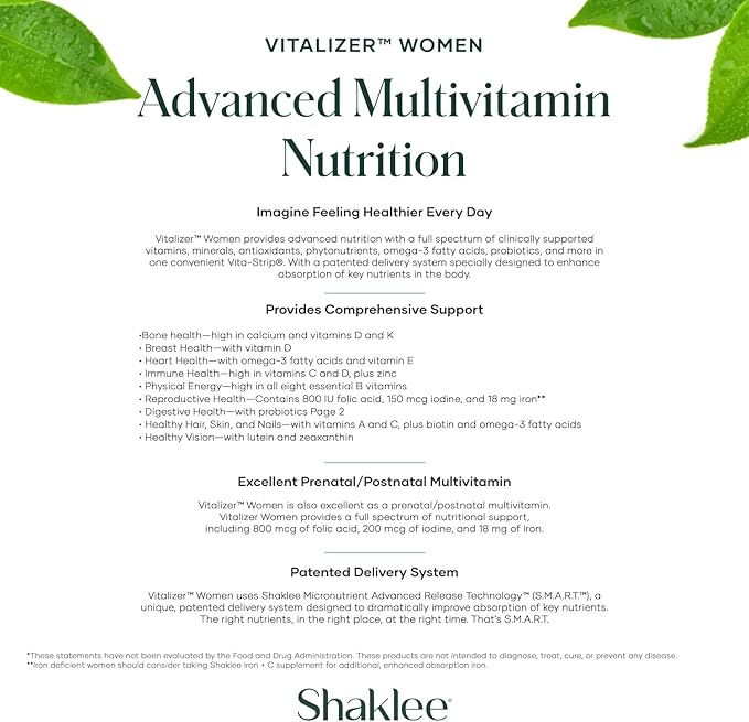 Shaklee -Vitalizer Women - Advanced Nutrition - Prenatal/Postnatal Multivitamin with Omega-3, Probiotics, and More - Supports Heart, Joint, Immune, Bone, Digestive, and Energy - 30 Vita-Strips®