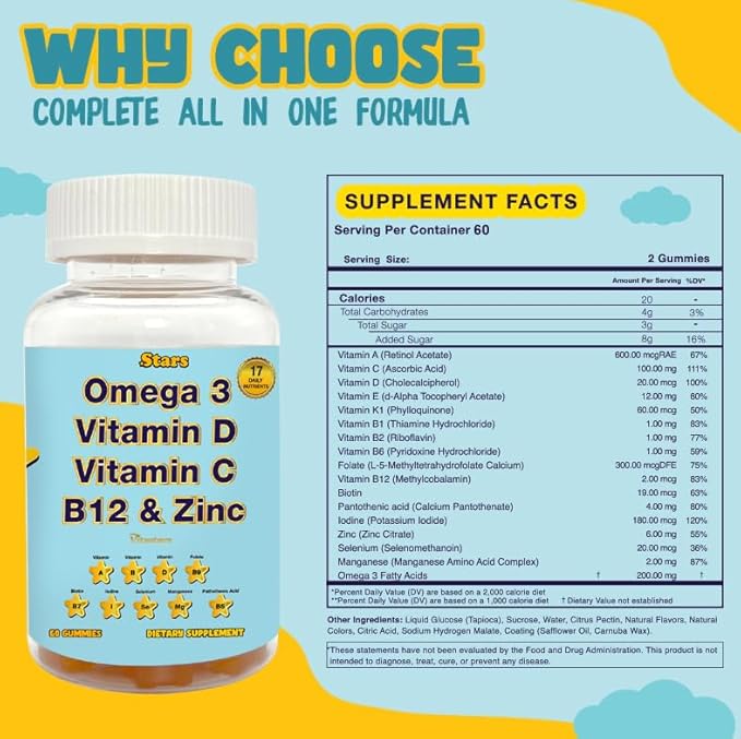 - COMPLETE DAILY MULTIVITAMIN GUMMIES: Vitastars Adult Multivitamin Gummy provide essential vitamins A, B, D, Biotin, Iodine, and more for daily health.